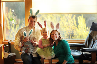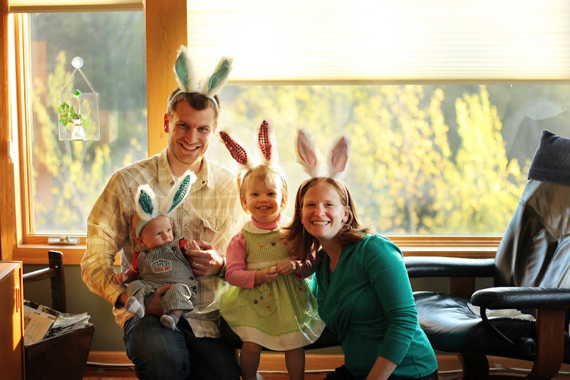For "actual" Easter, we headed to my parent's house for apps, dinner, an egg hunt and dessert with our close family friends. It was super fun, the kids loved it and we FINALLY got some pictures of our family of four. The pics kind of suck and Nate chose not to take any time to make them look much better...but at least we have SOMETHING :)